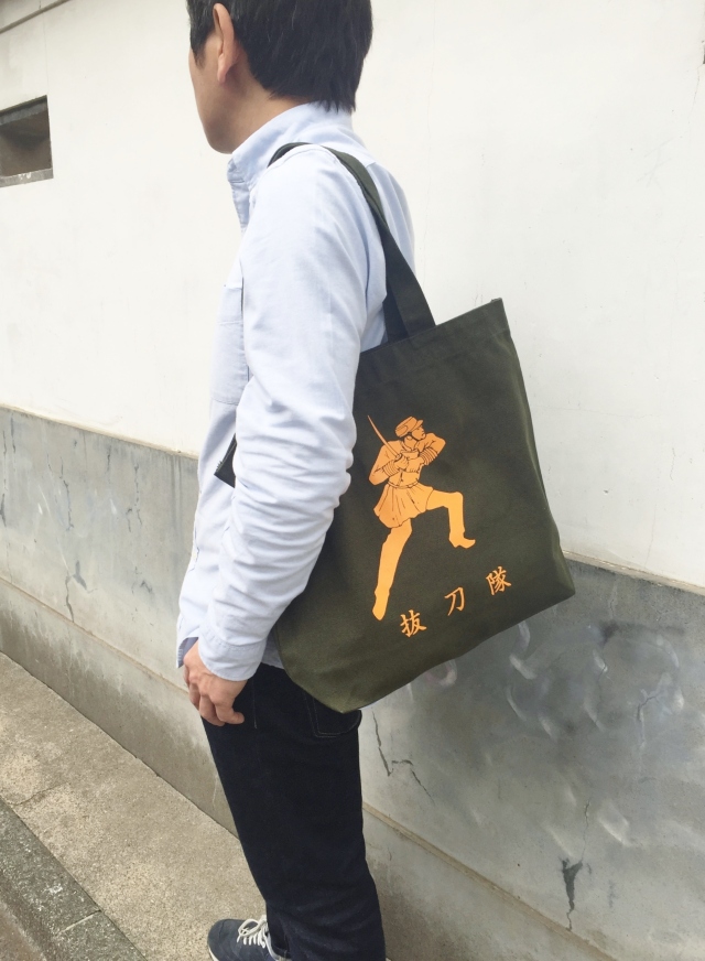 キャンバストートバッグ☆抜刀隊イラスト☆インナーポケット付