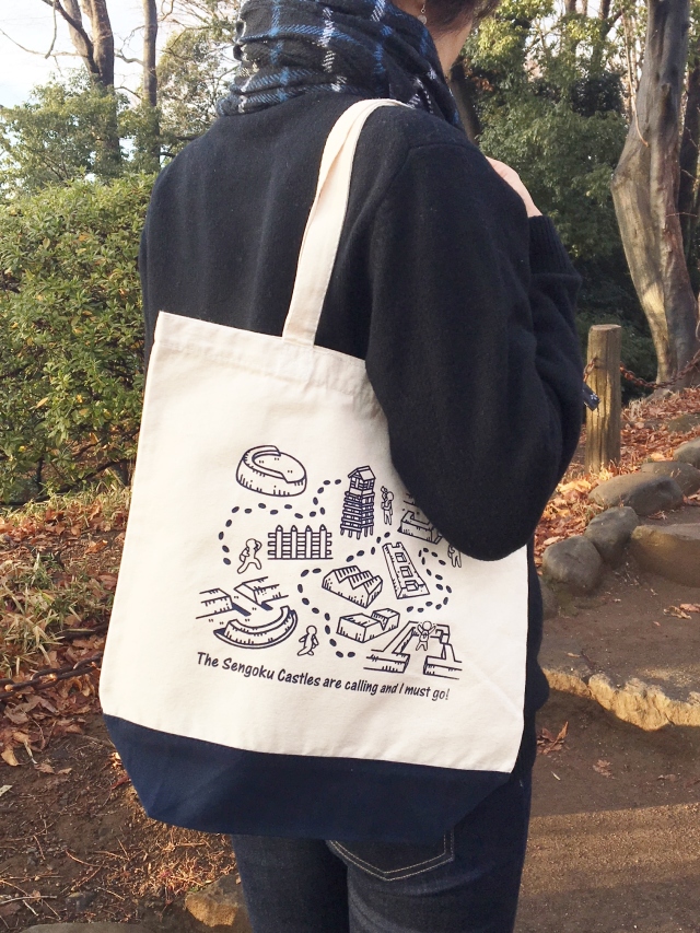 戦国のお城ハイキングイラストトートバッグ